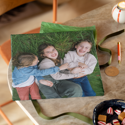 En fin julegave til far er veggdekor – velg det materialet og den størrelsen som passer best til rommet hans, og legg til et familiebilde der han kan vise frem favorittene sine.
